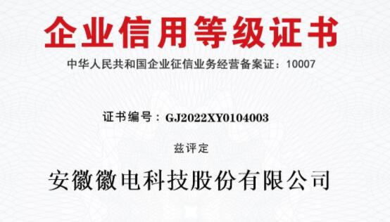 徽電科技榮獲“AAA級企業(yè)信用等級”認證